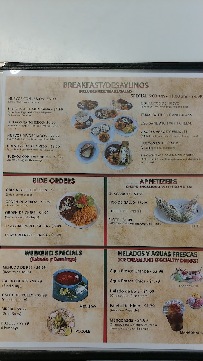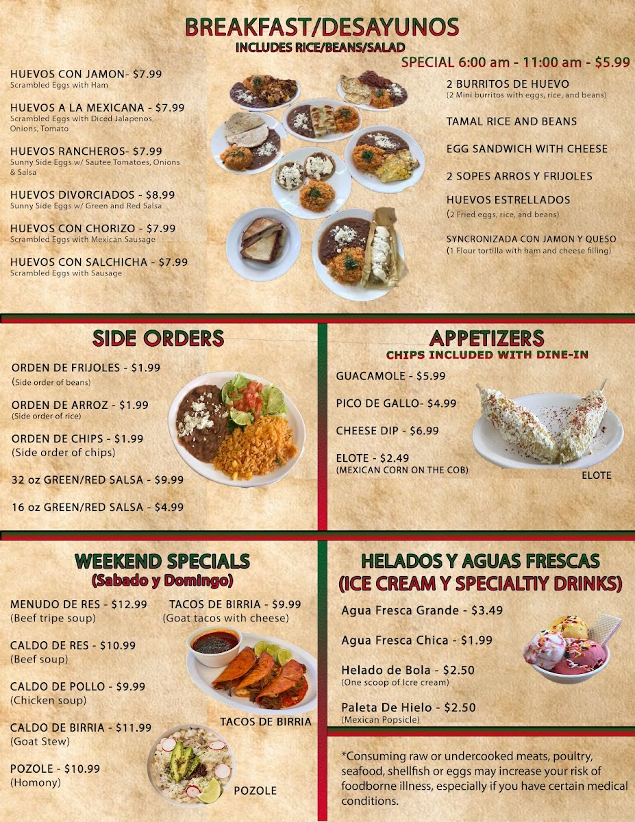 Spicy. Chorizo, bistek, pollo, salchicha, chile Morron, cebolla, queso y jalapeño Mexican sausage, steak, chicken, sausage, bell pepper, onions, cheese, and jalapeño.